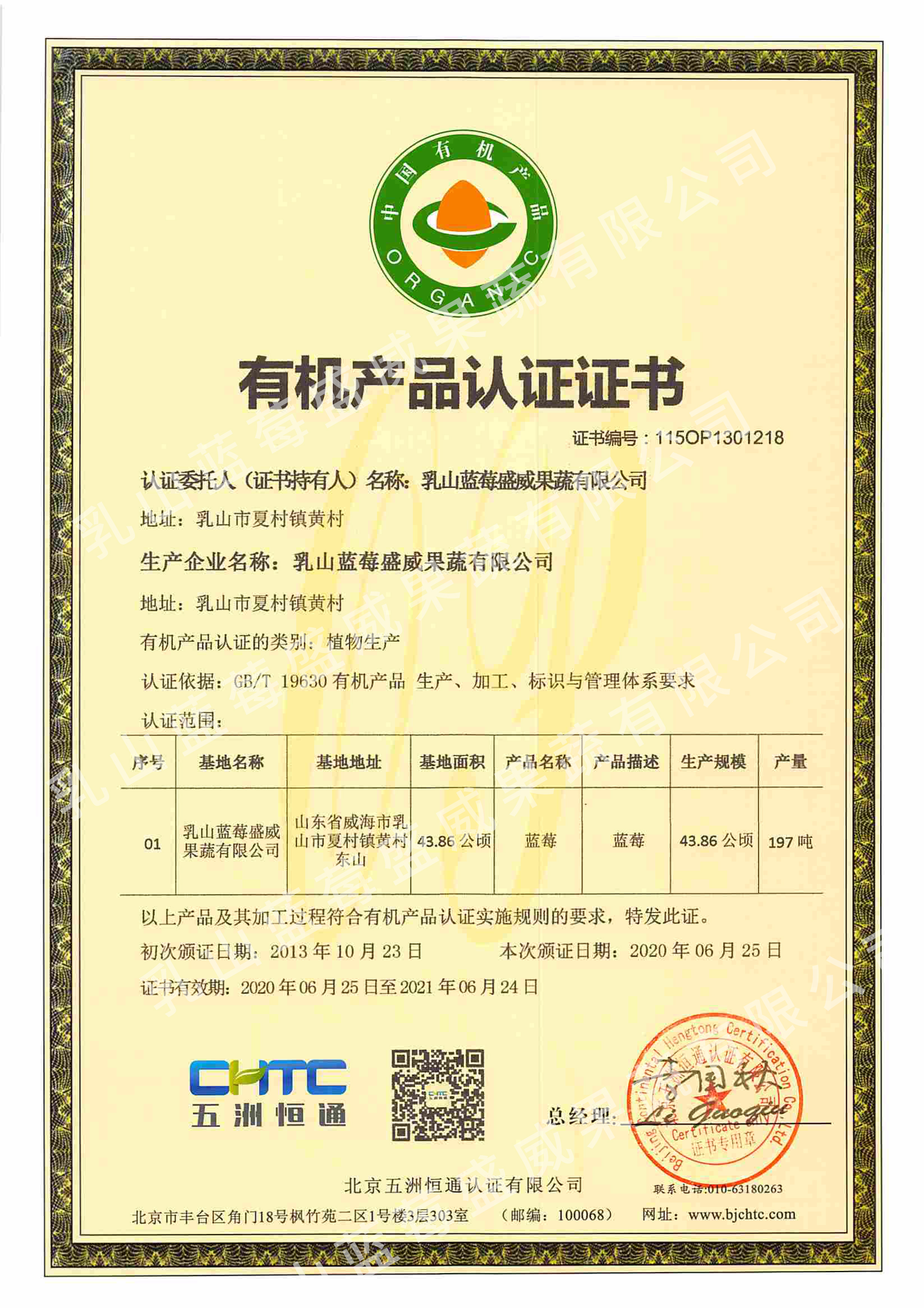In 2010, the farm passed the strict inspection and won the JAS certificate for organic food. Since 2012, the farm has been successfully renewing its organic certificate according to the national standards of China.