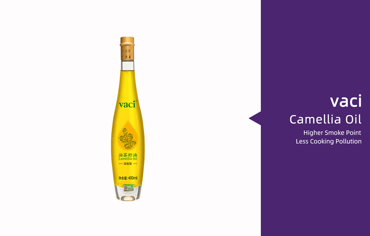 The oil goes through five steps of refining process before automatically vacuum packed. Refined camellia oil has a pure golden yellow color and smells delicate and subtle.