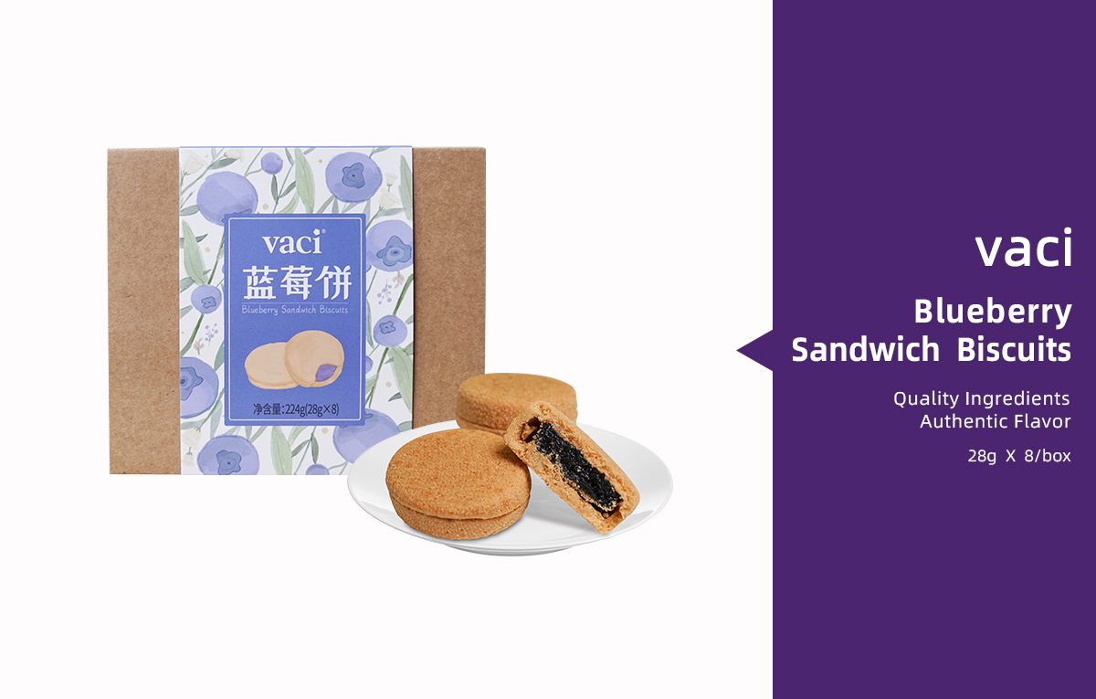 Sandwich filling is mildly cooked with Blueberries picked from our organic farm. Pastry baked with imported butter,milk powder and almond flour tastes crispy.
