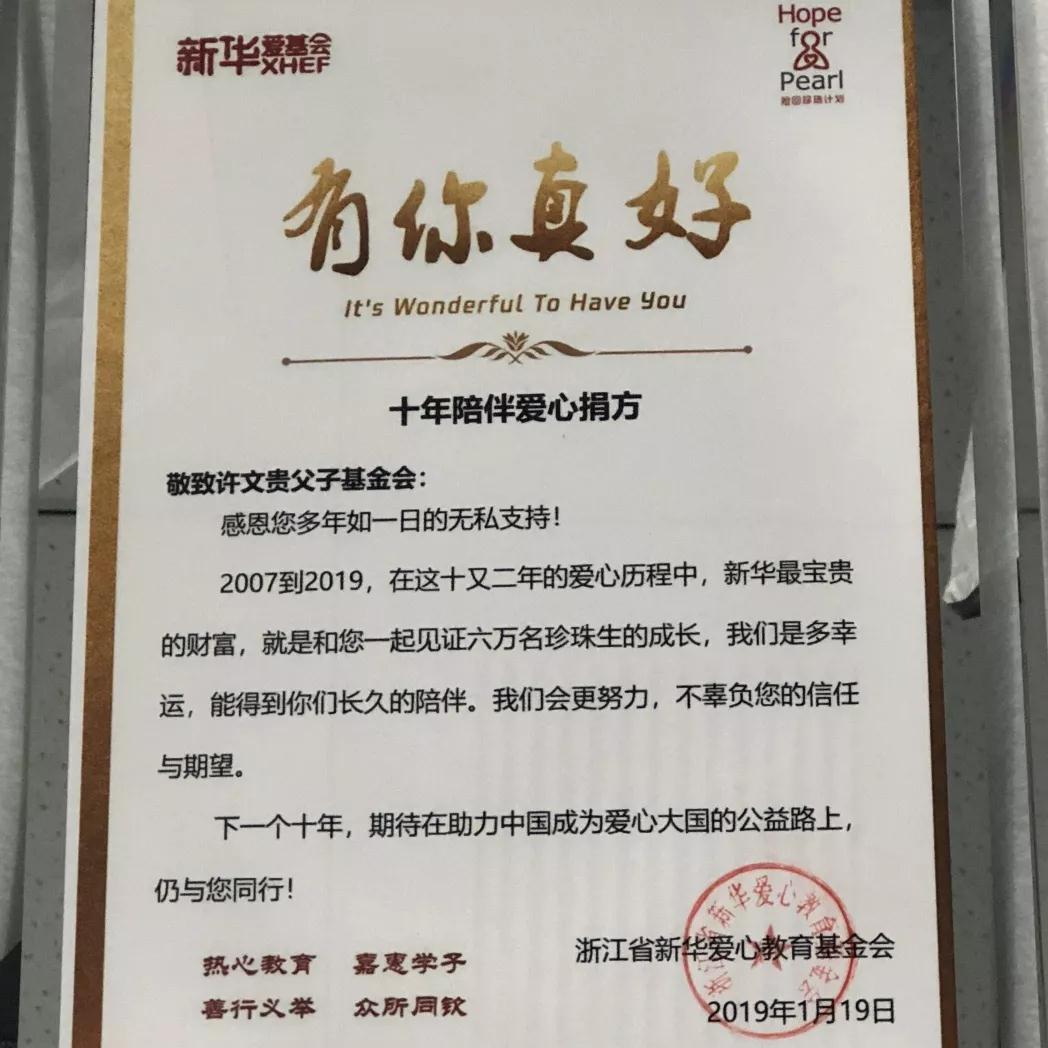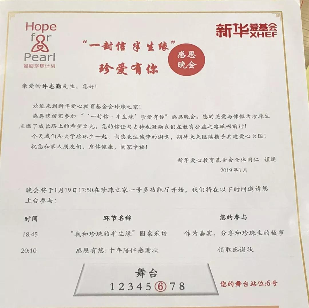 2019年1月19日,许先生受新华爱心教育基金会主办方的邀请,参加了“一封信·半生缘 珍爱有你”感恩晚会。